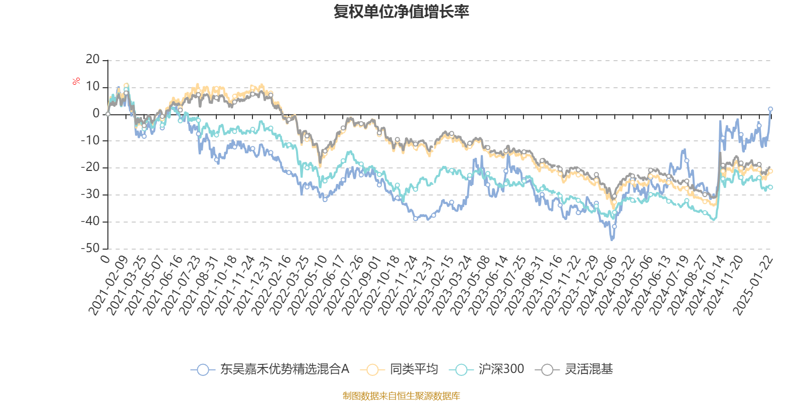 截至1月22日,东吴嘉禾优势精选混合A近三个月复权单位净值增长率为6.31%,位于同类可比基金85/920;近半年复权单位净值增长率为23.55%,位于同类可比基金83/920;近一年复权单位净值增长率为74.29%,位于同类可比基金5/920;近三年复权单位净值增长率为23.91%,位于同类可比基金12/898。