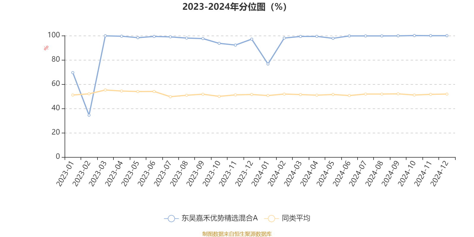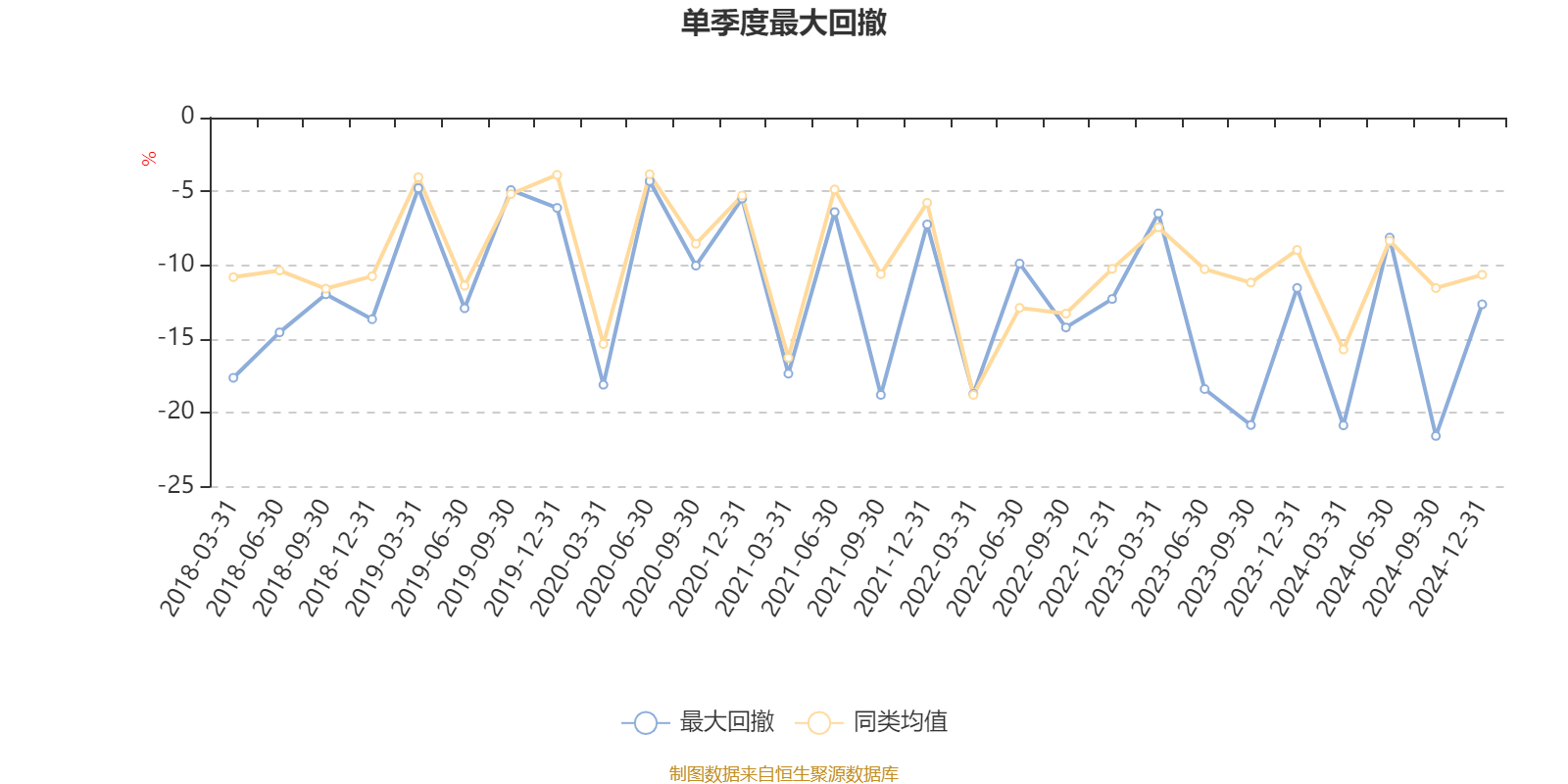 通过所选区间该基金净值增长率分位图,可以观察该基金与同类基金业绩比较情况。图为坐标原点到区间内某时点的净值增长率在同类基金中的分位数。