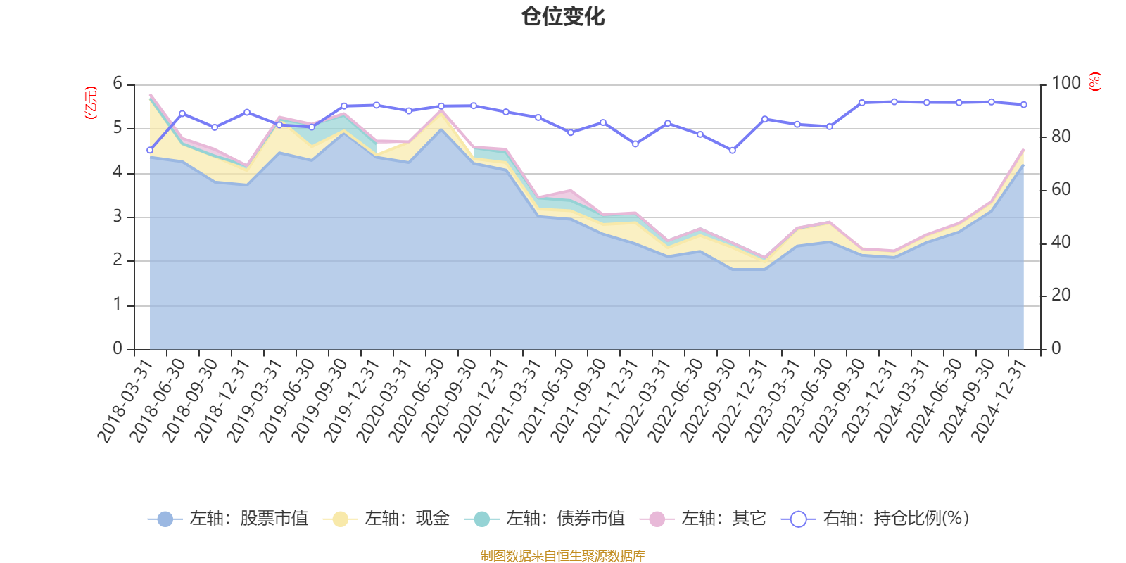 据定期报告数据统计,近三年平均股票仓位为88.03%,同类平均为79.9%。2023年末基金达到93.48%的最高仓位,2022年三季度末最低,为75.11%。